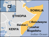 On Thursday, the militias pressed home their advantage, advancing northwards towards the Ethiopian border and the refuge of the weak transitional government in Baidoa.