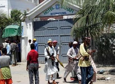 Somalia Islamic militia guard Sahafi Hotel after it was captured from those of the counter terrorism alliance in Somalia capital Mogadishu, May 25, 2006. Fresh clashes between rival Somali militias spread across Mogadishu on Thursday, killing up to 30 more people in the anarchic Horn of Africa nation’s worst violence for years, witnesses said. [Reuters]
