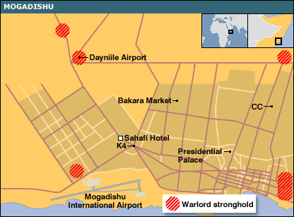The BBC’s Mohammad Olad Hassan in Mogadishu says this is the third base that the militias loyal to the Islamic Courts have captured from warlords.