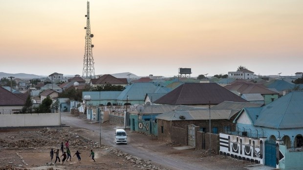 Boys play football in an empty lot in Garowe, the capital of Puntland. Photographer: Andrew Renneisen/Getty Images