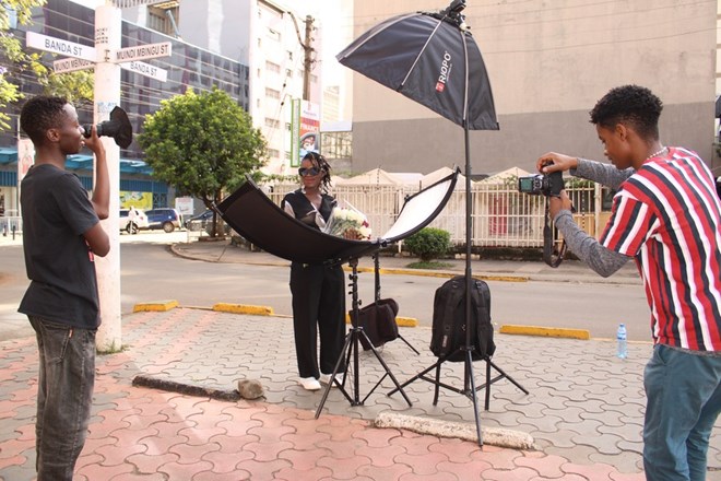 Awadh Salim (R), a 26-year-old photographer, takes a photo of a client in Nairobi, the capital of Kenya, on Nov. 12, 2023.  (Photo by Chrispinus Omar/Xinhua)