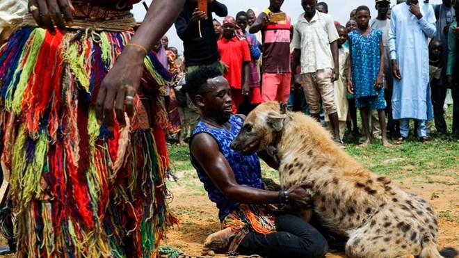 Nigeria’s hyena men put maligned animals centre stage. Jahun pulls a hyena on top of himself. PHOTO | REUTERS