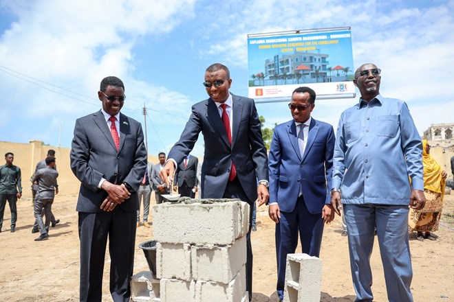 Mogadishu (HOL) — Prime Minister Hamza Abdi Barre launched the construction of a new passport issuance center in Mogadishu on Thursday. The facility, supported by the Danish Government, is located in the Boondheere district and is expected to streamline passport delivery.