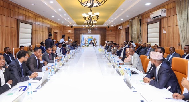 FILE – The Somali Cabinet meets in Mogadishu, chaired by Prime Minister Hamza Abdi Barre.