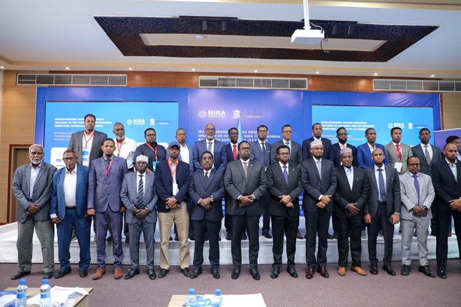Mogadishu (HOL) — The National Identification and Registration Authority (NIRA) and the Somali Bankers Association (SBA) have officially signed a Memorandum of Understanding (MoU) to implement a National Digital Identification system for bank customers.
