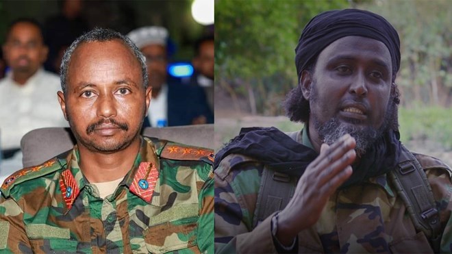 FILE PHOTOS – General Dayah Abdi Abdulle, Commander of Somalia’s Ground Forces. Right: Ali Mohamud Rageh, known as Ali Dheere, a senior leader of the Al-Shabaab militant group.