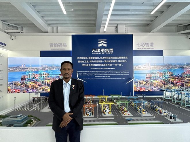 Jama Mohamed Askar, a member of the finance committee of the House of the People in Somalia and chairperson of the Somali-Chinese Parliamentary Friendship Group, paid a visit to Tianjin Port on Tuesday. Provided to chinadaily.com.cn