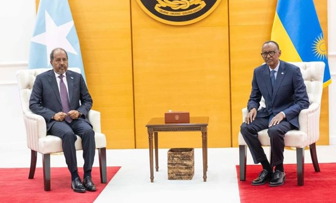 Kigali (HOL) – Somali President Hassan Sheikh Mohamud met with Rwandan President Paul Kagame in Kigali on Monday to discuss bilateral relations and regional cooperation.
