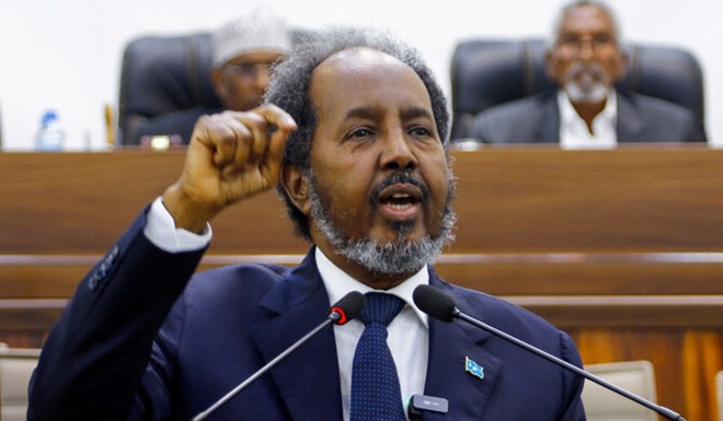Somalia’s President Hassan Sheikh Mohamud addresses the parliament regarding the Ethiopia-Somaliland port deal, in Mogadishu, Somalia January 2, 2024. (REUTERS)