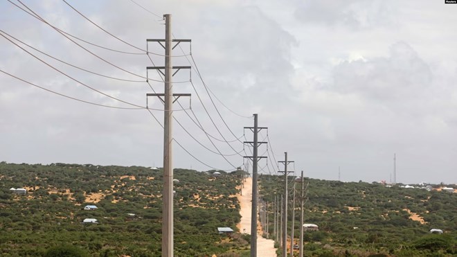 FILE – Electrical power lines from the Benadir Electricity Company (BECO) solar project in the outskirts Mogadishu, May 21, 2020.