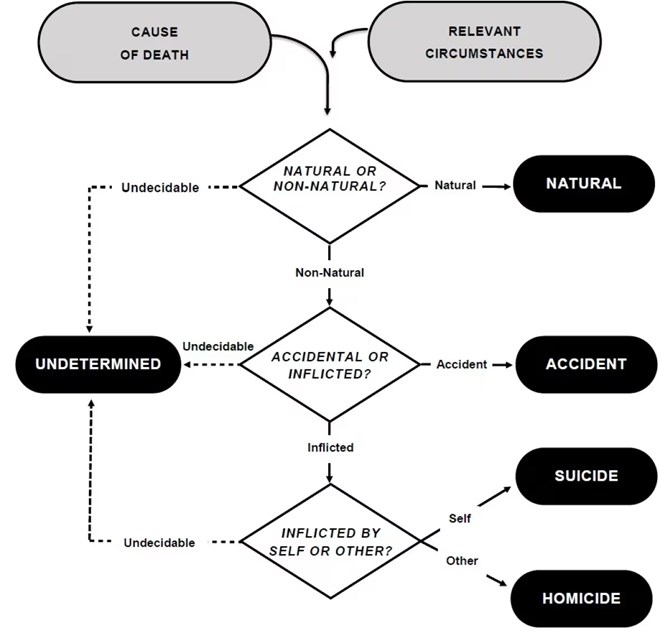 This is the decision chart given to aid jurors in deciding a person’s manner of death. (Office of the Chief Coroner)