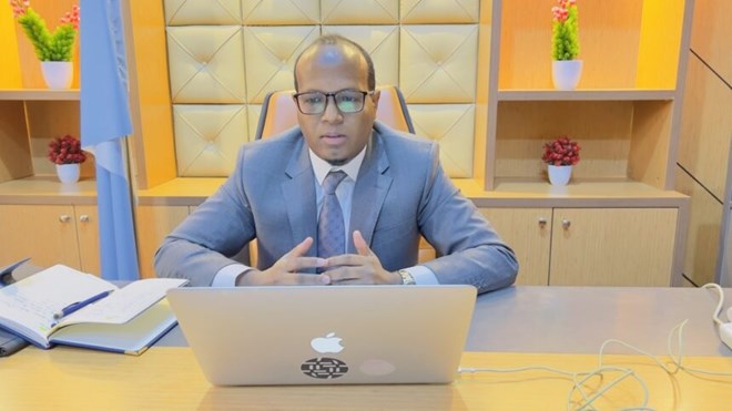 FILE – Mustafa Yasin Sheik, Director General of Somalia’s National Communications Authority (NCA), pictured during a virtual meeting. CREDIT / SONNA