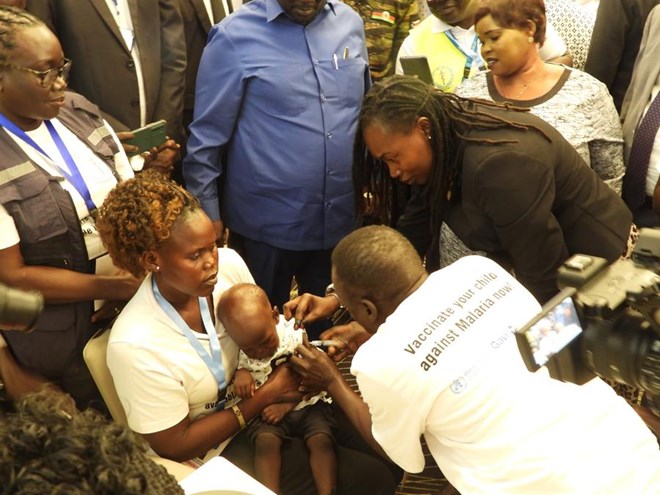 A health worker vaccinates a child during the launch of a malaria vaccination campaign in Juba, capital of South Sudan, July 16, 2024. (Photo by Denis Elamu/Xinhua)