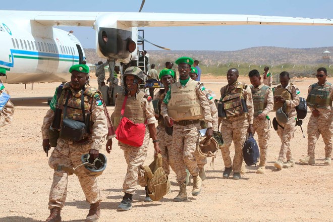 Outgoing African Union Mission in Somalia (Atmis) troops arrive at Jalalaqsi, Somalia on February 9, 2023. PHOTO | POOL