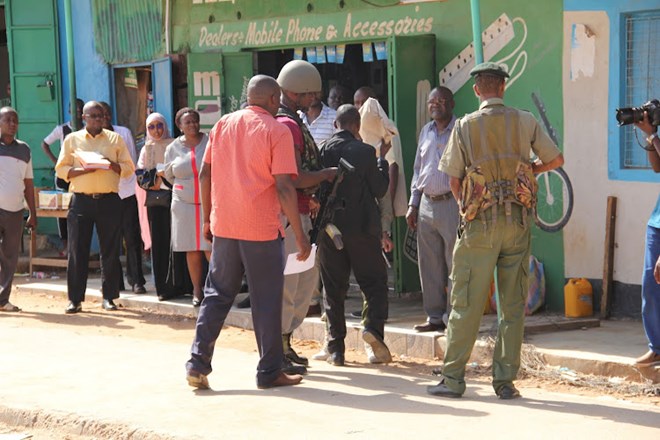 HEARING: Issack Robow, the driver to abducted Cuban doctors, led by police to the scene of crime for an open court hearing Image: STEPHEN ASTARIKO