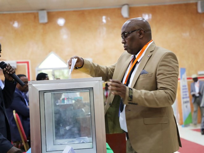 FILE PHOTO – A lawmaker casts his ballot during the last Puntland Presidential elections.