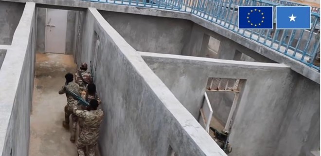 Somali soldiers navigate through the new training facilities at the General Dhagabadan Training Center, recently inaugurated with support from the European Union. (EU/Somalia)