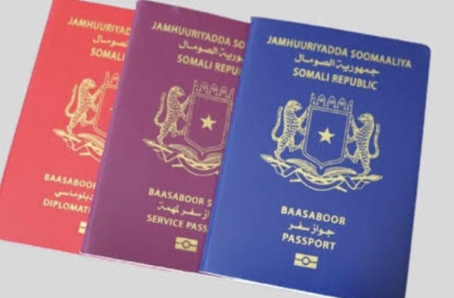 FILE – Various types of Somali passports, including diplomatic (red), service (maroon), and regular (blue) passports. The EU has proposed new visa restrictions for Somali nationals.
