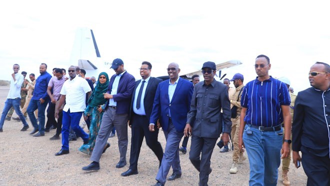 Abudwaq (HOL) — A delegation led by Somalia’s Minister of Internal Security, Abdullahi Sheikh Ismail Fartaag, arrived in Abudwaq on Thursday to address the escalating security situation following the recent seizure of smuggled weapons by local militias.