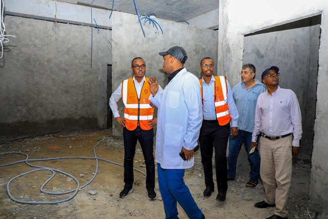 Mogadishu (HOL) — The National Disaster Management Agency (SoDMA) is on the verge of completing a cutting-edge emergency assistance facility, including a trauma center, in Mogadishu; the centre is designed to provide immediate aid to those in urgent need of medical attention. Commissioner Mohamud Moalim Abdulle recently visited the construction site, emphasizing the center’s vital role in saving lives during emergencies.