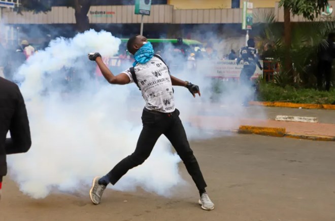 According to a Kenya Human Rights Commission official, 21-year-old Evans Kiratu was “hit by a tear gas canister” during the demonstrations.