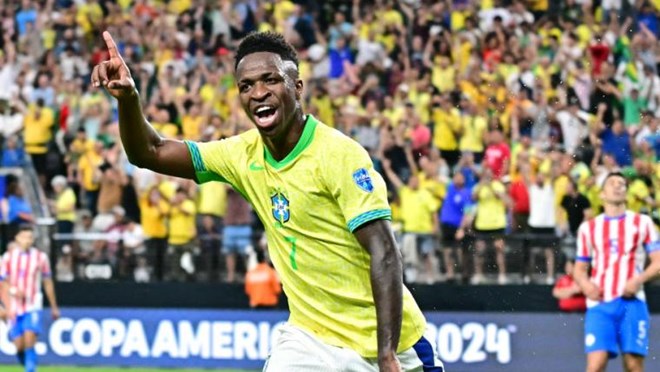 Vinicius Junior scored twice as Brazil all but secured a spot into the Copa America quarterfinals on Friday with a 4-1 victory over Paraguay.