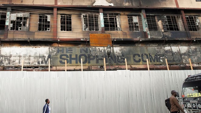 People walk outside a shopping mall that was burnt during the demonstration against Kenya’s proposed finance bill, in Nairobi, Kenya, June 28, 2024.