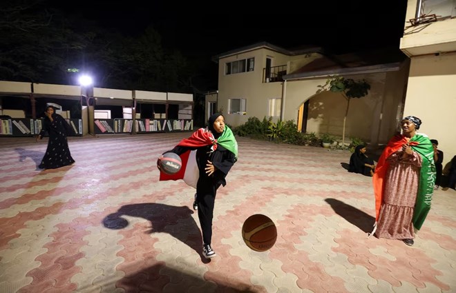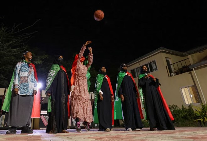Members of the Hargeisa Basketball Girls team play basketball during the Independence Day Eve celebrations in Hargeisa, Somaliland, May 17, 2024. REUTERS/Tiksa Negeri