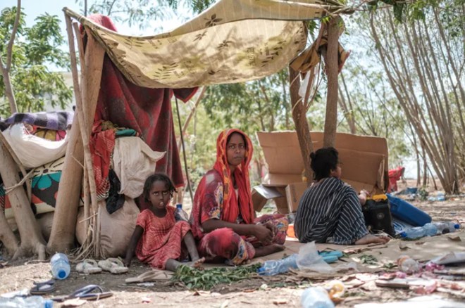 Tigrayans displaced by the conflict rest in a makeshift tent in the city of Semera, Ethiopia (AFP)