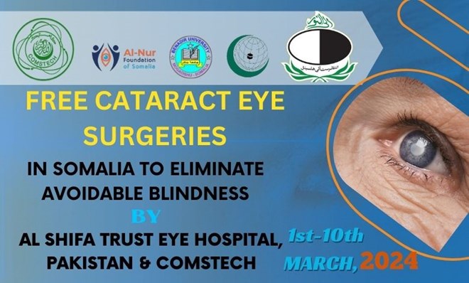 ISLAMABAD, Mar 12 (APP): A ten-day free Cataract Surgery Camp, jointly organized by COMSTECH, Al-Shifa Trust Eye Hospital Rawalpindi, and Al-Nur Foundation (Somalia), concluded with a successful outcome, restoring vision to hundreds in Somalia.