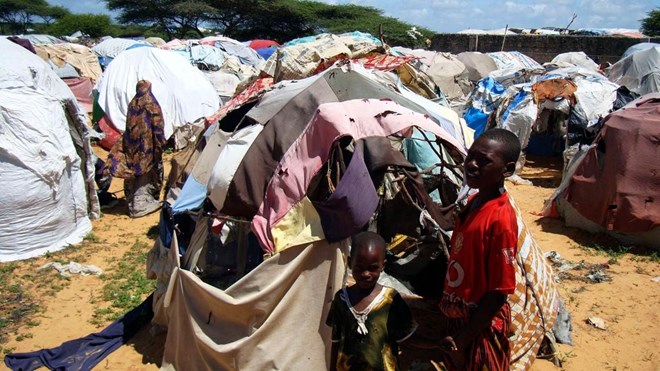 Internally displaced children stand outside at a makeshift a camp outside the Somalia’s capital Mogadishu on June 12, 2009. PHOTO | REUTERS