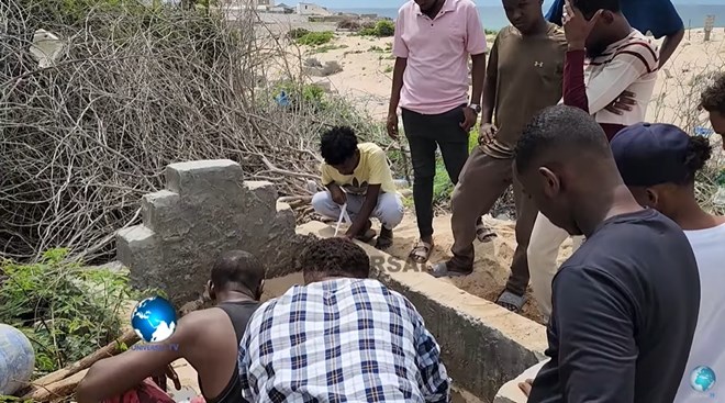 Residents of Mogadishu gather to exhume bodies from a cemetery at Bulusia School in the Hamar Jajab district, following a government directive. The site, which is being cleared under unspecified orders, includes the graves of notable local figures. CREDIT/ Universal TV