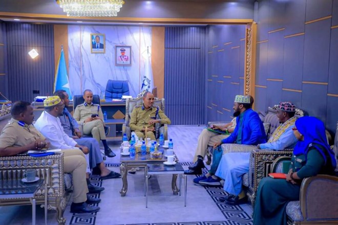 Mogadishu (HOL) – Somali Police Chief General Sulub Ahmed Firin held a meeting with Somali clerics in Mogadishu on Saturday to discuss enhancing community awareness and cooperation between the police and the clerics.