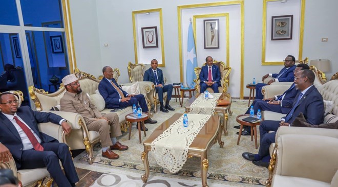 Prime Minister, Hamse Abdi Barre, along with regional state leaders including Jubbaland’s Ahmed Mohamed Islam, South West’s Abdizais Hassan Mohamed Laftagaren, Galmudug’s Ahmed Abdi Kariye, and Hirshabelle’s Ali Gudlawe Hussein are attending the meeting.