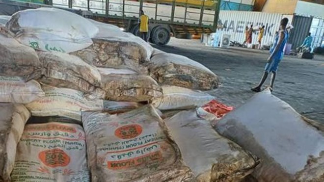 Substandard flour dumped at Mogadishu port, Somalia on May 15, 2024. PHOTO | NMG