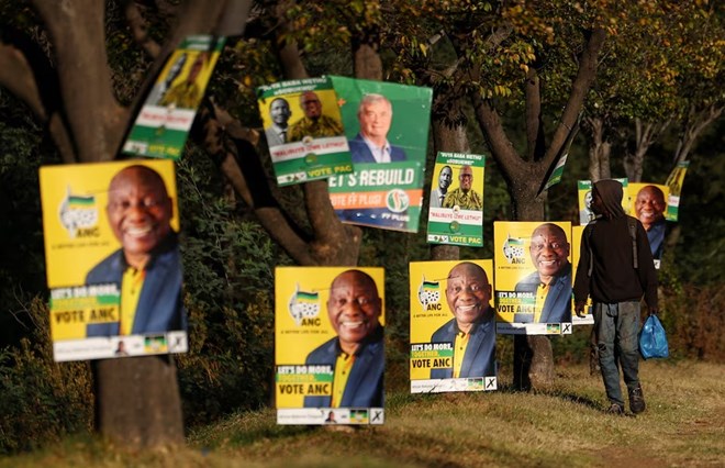 A man walks past election posters of the ruling African National Congress (ANC), as South Africa prepares for the May 29 general elections, in Soweto, South Africa, May 24, 2024. REUTERS/Siphiwe Sibeko/File Photo