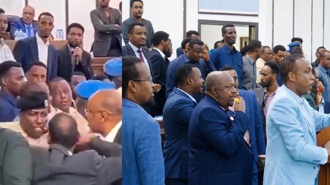 Mogadishu (HOL) — A heated altercation erupted in Somalia’s parliament Monday, leaving a police officer injured and raising concerns over the conduct of lawmakers as the country navigates critical electoral milestones. The officer was struck while mediating tensions among MPs debating the National Electoral Commission, an incident now under investigation.