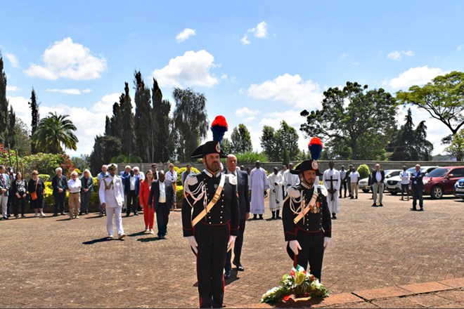 With them, Carabinieri in historical uniforms to coincide with National Unity and Armed Forces Day. More than 700 Italians, from 1941 to 1946, lost their lives while in detention in 15 camps in Kenya,