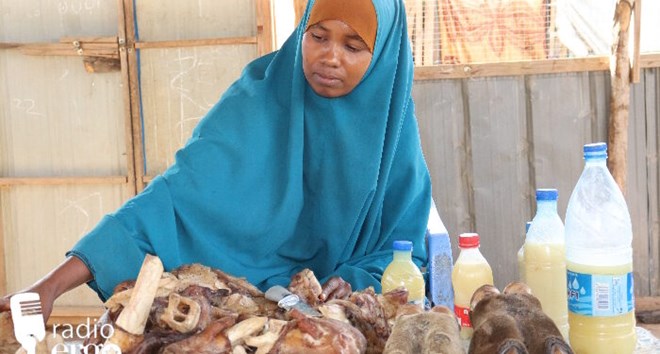 Hawo Salad Cali selling the bones she collected in Buur camp on the outskirts of Baidoa/Abdullahi Mohamed/Ergo
