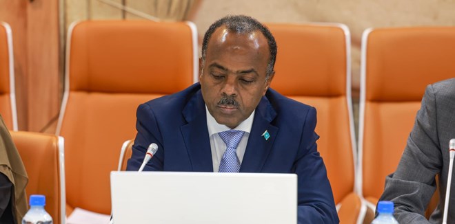 FILE – Somali Deputy Foreign Minister Ali Omar Ali Balcad participates in a government meeting in Mogadishu.