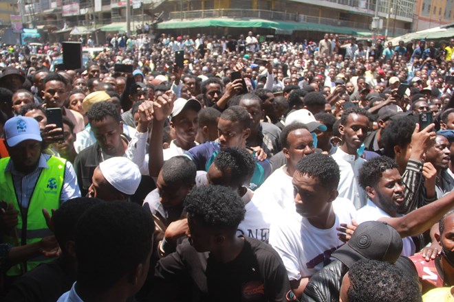 Hundreds of protesters gather in Eastleigh, Nairobi, demanding justice for the brutal murders of three Somali women. Businesses were shut down as the community expressed outrage over the lack of arrests in the case. CREDIT: MP Yusuf Hassan/X (Twitter)