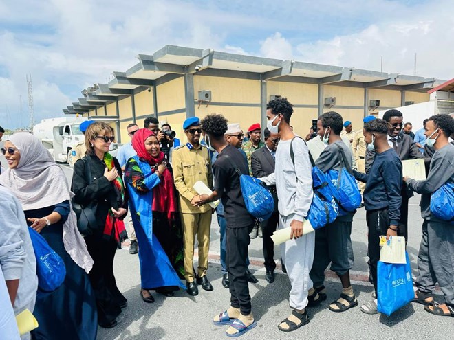 Upon arrival, the returnees were welcomed by government officials, including Minister of Petroleum and Mineral Resources Abdirizak Mohamed and Minister of Internal Security Abdullahi Sheikh Fartaag,