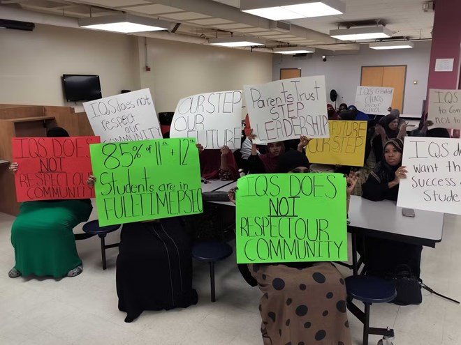 The controversy over STEP’s management has led to divisions among parents and staff. On Monday night, parents packed STEP’s St. Paul cafeteria with those who appeared to support STEP leaders holding up a range of posters with sayings like ”Parents trust STEP leadership” and ”IQS created CHAOS in our school.” Some parents and employees have defended the school and its academic program which has boasted graduation rates as high as 100% in recent years. However, another segment of teachers have strongly criticized administrators.