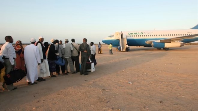 FILE – Passengers wait to board a Daalo Airlines flight at Berbera Airport in Somaliland, 2013.  © AP