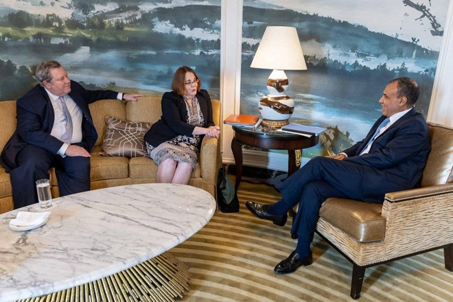 Egyptian Foreign Minister during his meeting with the US Special Envoy for the Horn of Africa in Washington (Egyptian Foreign Ministry)