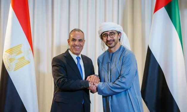 Minister of Foreign Affairs, Immigration and Egyptian Expats Badr Abdelatty met Sunday with his Emirati counterpart Sheikh Abdullah Bin Zayed Al Nahyan in Abu Dhabi.