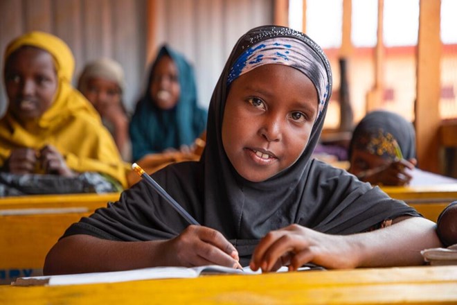 In a land ravaged by drought and displacement, a young girl’s thirst for education shines bright. Photo: Abdulkadir Mohamed/NRC
