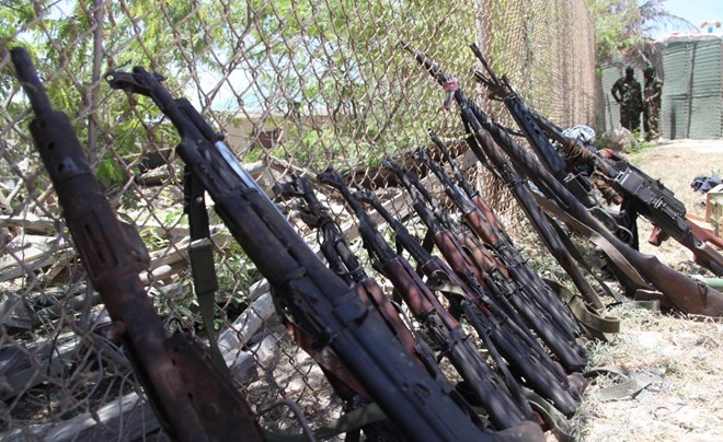 FILE – Weapons are displayed in Mogadishu following a security operation.