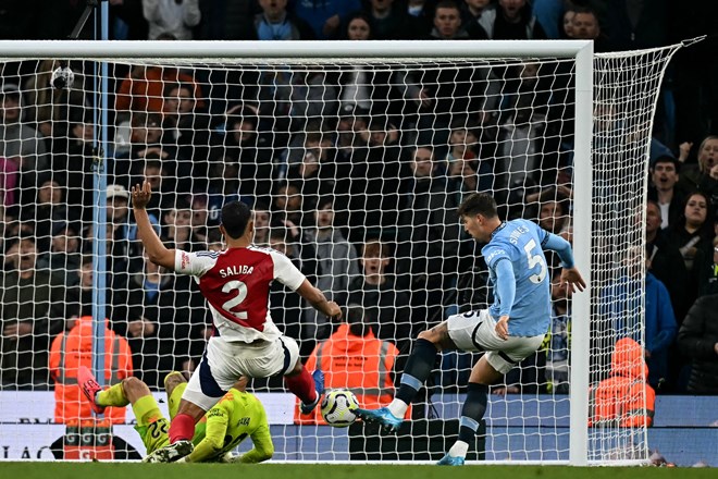 Manchester City remain top of the Premier League as a late goal from John Stones saved their unbeaten start to the season in a 2-2 draw at home to Arsenal on Sunday.