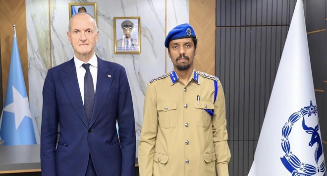 Mogadishu (HOL) – Somali Police Force Commander General Asad Osman Abdullahi Diyano met with the UK Ambassador to Somalia, Michael Nithavrianakis, and senior UK officials in Mogadishu on Sunday to discuss strengthening security collaboration and counter-terrorism efforts.